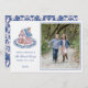 Este cartão de Natal tem um pré-filhote de design do milênio apresentando uma Casa de Pão Azul e rosa-pincel e marinho. A parte inferior tem texto azul que diz "Feliz Natal". Você pode personalizar com um nome e um ano. As costas têm uma cor damasco azul escura coordenada.