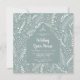Convite moderno à casa aberta de férias, com uma casa moldada por delicadas ilustrações brancas, sazonais, florais e verdes, e por uma simples tipografia branca contra um fundo verde-claro-esmalte.