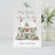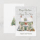 Esta design apresenta uma ilustração aquática de uma bela casa coberta de neve com decorações de Natal. Você pode alterar o texto de acordo com as suas necessidades