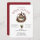 Bonita e elegante, este convite elegante a uma CASA ABERTA apresenta uma bela casa de pássaros de inverno feita em aquarela. Este convite é elegante e simples!