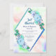 Um convite de casamento elegante em azul com floral aquarela e geométrico de diamante para recepção de casamento.