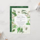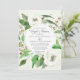 Tema pacífico e sereno da floresta florestal com folhas e sementes de eucalipto, juntou elementos do chão da floresta e rosas selvagens brancos pintados manualmente em aquarelas por Audrey Jeanne Roberts. O plano de fundo apresenta uma rica e profunda lavagem a aquarela verde da floresta. Está disponível um conjunto completo de decorações de chá e noivado para correspondência. Audrey Jeanne Roberts, todos os direitos reservados.