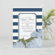 Você tem olhado através do Pinterest tentando encontrar uma papelaria de casamento elegante, sofisticada, feminina, vintage no estilo, mas moderna no layout? Tivemos em mente quando criamos este fundo listrado contemporâneo em cores náuticas de azul marinho e branco com uma fina fina borda de cinza prateada. A trabalho de arte pintada à mão por Audrey Jeanne Roberts começou em seu próprio jardim, crescendo em sua varanda. Estas flores azul pálidas, muito detalhadas, de hidrangea têm uma qualidade parecida para elas. Emitido sobre uma Arte Deco chamada de gravada, direitos autorais da corArt Audrey Jeanne Roberts, todos os direitos reservados.