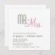 Este convite para o chá de casamento do século médio para casais modernos apresenta a tipografia retrô e um layout limpo. "Sr. + Sra." está escrito em tons de marrom escuro e cor-de-rosa-negrito no topo do convite. Abaixo, personalize o modelo com os detalhes do seu chá.