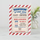 Hospede um chá de fraldas do tema de baseball vintage do grande golpe. Listras reais azuis, vermelhas e brancas, e cores marrons sujas. A parte traseira da placa tem um padrão de bolinhas azul e branco correspondente. Você pode remover isso clicando em "Personalizar" e excluindo o plano de fundo. Altere as cores ou deixe branco ou adicione texto (instruções, detalhes da parte, etc.).