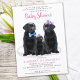 Convide seus amigos e família para comemorar a chegada de sua nova menina com este adorável convite para bebês, acessórios de festas e presentes em um laboratório negro. A mãe negra mais doce do laboratório com flores e pai com gravata arco, e uma menina fofa com flores adoram este convite. Este design simples e mínimo é perfeito para qualquer chá de fraldas temático de cachorros. COPYRIGHT © 2020 Judy Burrows, Black Dog Art - Todos Os Direitos Reservados. Casais cor-de-rosa Convite para Chá de fraldas de menina