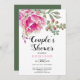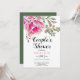 Flores cor-de-água cor rosa e primavera suculento e convite para chá de casais de casamento florais de verão. Apresenta flores de cacto rosa quente e folhas suculentas verdes. A parte de trás é de cor verde sólida.