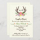 Traças e flores cor-de-coral, flores silvestres, monograma, casais de casamento, convite para chá, com um par de veados castanhos e um buquê de flores silvestres em coral, rosa, amarela com folhagem e folhas verdes e suas iniciais no marfim. Este design de casamento floral moderno, caprichoso, mas elegante e na moda monograma é perfeitamente personalizável e faz parte de um casamento perfeito para um casamento primavera, verão ou outono.