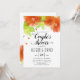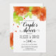 Buquê com flores etéreas laranja e roteiro cursivo caligrafia manuscrita caligrafia floral casais de casamento da primavera convite para chás. A parte superior é coberta por um belo buquê de flores laranja com folhas verdes.