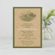 Vintage vineyard and cork beige, convite para chás de casamento verde-oliva que apresenta uma vinheta oval que se assemelha à Toscana em verde-oliva em bege e cortiça-bronzeada com uma fronteira verde-oliva. Esta design de modelo faz parte de um casamento e é completamente personalizável. É perfeito para um casamento rústico no estilo Tuscan, que é do outono/outono. Observe que não há nenhuma cortiça real, mas uma imagem "impressa em".