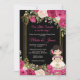 Flores rosa e fundo preto no fundo do partido mexicano Fiesta em convite para uma festa de chá de fraldas com a Floral mexicana.