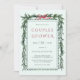 Este elegante convite para chás apresenta uma cor d'água, uma garland de pinheiro de Natal, acentuada com um arco de fita vermelha charmoso.