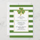 Este adorável convite de chá do casal de casamento irlandês primavera apresenta um trevo ou uma folha de shamrock emparelhada com um padrão verde e branco. Seu texto está em um quadro branco com contorno de ouro. Um padrão listrado verde e branco cobrir as costas.