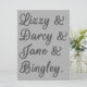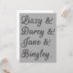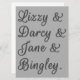 Orgulho 'Lizzy & Darcy & Jane & Bingley' e casais de preconceito em um fundo de cinza.