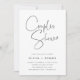 Convide os convidados a comemorar o feliz casal com estes convites para chás modernos e mínimos de casais de dois lados, em preto e branco clássico. O design simples apresenta o "chá de casais" em um script manual casual, com os detalhes de seu evento em letras negras suaves e modernas. Use o verso para adicionar detalhes adicionais, como uma solicitação de receita, instruções de exibição de chá e um código QR para o registro do casal.