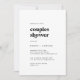 Este casal de tipografia negra moderna é perfeito para um chá de casamento simples. O design minimalista preto-e-branco apresenta uma fonte retrô, mas contemporânea, com um toque único da boêmia rústica. Perfeito para qualquer estação. Mantenha o mínimo possível ou adicione seus próprios gráficos e trabalho de arte.