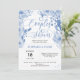 Chá de Casais Florais Convite em aquarela com flores azuis empoeiradas e folhagem com alguns decapantes azuis. A design apresenta elegantes letras de mão e tipografia em rosa e azul. "Chá Casal" é escrito à mão em caligrafia suave e o modelo é preparado para você personalizar o resto do texto do convite. Por favor, procure na minha loja itens correspondentes.