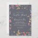 Este clássico convite para chás de casais florais selvagens azul é perfeito para um chá de casamento rústico. A design apresenta flores silvestres brancas, amarelas, roxas e brancas com folhagem em fundo de rosa e aquarela verde.