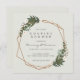 Casais modernos de vassoura convites para chás com seus detalhes de evento dentro de um quadro geométrico dourado cercado por verde e flores brancas. Um design botânico perfeito para uma celebração boêmica no verão. Quadro cortesia de:<a href="http://www.freepik.com">Concebida por Freepik</a>