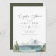 Este convite para chás apresenta uma cena de lago de montanha rustic de cor d'água e uma fonte elegante de script. Isto faz a adição perfeita ao seu evento de casais de montanha rusticado. Edite com facilidade o texto *maioria* para atender às necessidades do seu evento.