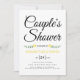 Tipografia escrita manual flores amarelas simples convite para chás de casamento florais. Mostra seus nomes em uma escrita cursiva tipografia de estilo manuscrito e duas pequenas flores amarelas com folhas verdes. O fundo inclui um padrão floral.