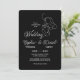 Cartão de casamento preto e branco elegante com ilustração minimalista de arte de linha e tipografia refinada. O fundo negro arrojado com texto branco cria um aspecto sofisticado e eterno, ideal para luxo, gravata negra ou casamentos modernos. A caligrafia romântica para os primeiros nomes emparelhados com fontes serif clássicas para os sobrenomes adiciona encanto e legibilidade. Totalmente personalizável — personalize nomes, data, hora e local para sua celebração especial. Perfeito para casais que buscam estilo de escrivaninha e papelaria artística.