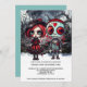 Casal de Halloween, Garota Doll e garoto em matas escuras assombradas com fundo de árvore assombrado. Convites de festas personalizados por Ricaso - Um casal fofo assustador com detalhes cardíacos amorosos e grandes olhos assombrantes.