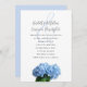 Lindos convites florais com um caule azul claro de flores de hydrangea. O casal está fazendo o convite nesta simples placa branca com upgrades opcionais de papel. Mostrado com o escamoteado e o papel texturizado. Um grande e fino e (e sinal) contém os nomes que estão no script. Este design também pode ser adquirido como um download instantâneo.