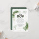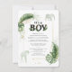 A girafa temida da floresta selvagem, e os rapazes elegantes, o convite para chá de fraldas de safari, com uma girafa, um elefante, folha de ouro e folhas verdes. Perfeito para os convites de um bebê