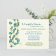 Flores azuis brancas e divertidas em um convite à videira para um chá de panela ou qualquer ocasião. Personalize o texto de acordo com as suas necessidades. Entre em contato com o designer para obter opções de cor adicionais.