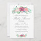 Casais elegantes convite para chás de fraldas com uma plantação de flores composta por rosas pastel cor-de-rosa e mauve no topo e no fundo. Os detalhes do evento estão em uma cinza média com seus nomes em uma fonte de script. O dorso é um azul empoeirado e pode ser mudado para qualquer cor que desejar. Este design floral é excelente para uma celebração no primavera.