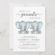 Um lindo bebê gêmeo casal convite para chá com "Dois Pequenos Amendoins Doce Estão A Caminho" escrito em tipografia moderna de cinza mole e um roteiro de na moda, e duas aquarelas azuis pastéis de elefantes bebês. Personalize os nomes dos pais e os detalhes do chá em simples tipografia de cinza.