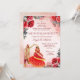 Convite de Mehndi e Sangeet com fundo rosa e casal de noivos indianos dançando. Com rosas vermelhas. Om é uma letra que pode ser copiada e colada, pode ser excluída ou substituída por outro símbolo disponível no teclado.