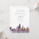 Este convite de casamento elegante com a silhueta de Chicago em watercolor pode ser personalizado com suas informações em tipografia sofisticada e com o código QR do seu site de casamento no verso. Criado por Thisisnotme©