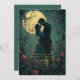 Convite romântico de casamento no estilo de ouro escuro e esmeralda clara.
