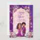 Casamento indiano rosa púrpura cor-de-rosa com caricatura de cartoon de casal de noiva giro e convite para casamento editável para transferência digital instantânea de modelo. Convites para casamento de temas roxos, todos em um convite com RSVP