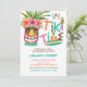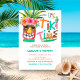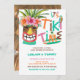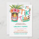 Casais tropicais de luau O convite para chás apresenta uma máscara tiki pintada manualmente, abacaxi, surfboard e papagaio com a tipografia "Hora de Tiki". Perfeito para um bebê ou chá de casamento e para temas de praia, ilha e verão. Mostrado como um convite para chás, mas você pode personalizá-lo para mostrar apenas um nome dependendo do tipo de chá que você está tendo. Trabalho de arte por ações da KL