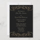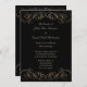 Design de convite para casamento vintage de elegante com ouro decorativo percorre o topo e o fundo sobre um fundo preto. Este design clássico vem em vários esquemas de cores. Se você quiser cores personalizadas, envie-me um e-mail em mshake5918@yahoo.com. Sem carga extra para mudanças de cor. Esta design também vem em muitos outros produtos de papel e postagem para atender a todas as suas necessidades de casamento.