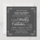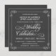 Convites tipográficos do casamento do quadro -- Swirly, rolos encaracolado e quadro rústico extravagante no quadro-negro das cinzas de ardósia. Adicione os nomes e a informação wedding neste modelo fácil de usar. Caligrafia do giz do estilo do vintage e tipografia lunática do roteiro - mude os estilos de pia batismal para refletir seu tema retro formal ou semi-formal do casamento. O estilo quadrado do convite do conselho de giz é perfeito para casamentos modernos na moda com um toque do divertimento de encanto sofisticado para os noivos tradicionais. Preços disponíveis para noivas em um orçamento. NOTA: Este design de produto setup para cartões quadrados somente, que exige o porte postal extra.