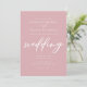 Este convite de casamento cor-de-rosa-rosa, empoeirado, apresenta uma tipografia branca delicada para uma cerimônia de tarde romântica para uma noiva feminina que gosta de cores suaves e de design de guião mínima. Convites cor-de-rosa macio.