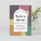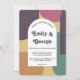 Este convite de casamento moderno é perfeito para o casal que quer fazer uma declaração na moda. O convite apresenta uma caligrafia retrô ousada em um arco branco com um fundo de abstrato vibrante e ranhura. A combinação artística do velho e do novo dá a qualquer evento um toque convidativo e único. Quer você esteja planejando uma simples reunião ou uma grande celebração, este convite vai garantir que seus convidados saibam que é uma ocasião para se lembrar.