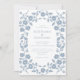 Este convite completo mantém as coisas simples e bonitas. A frente mostra seus nomes e detalhes de eventos em um layout limpo, enquanto a parte traseira inclui espaço para sua agenda de casamento, acomodações, informações de RSVP e até mesmo um código QR vinculado ao seu site ou RSVP digital. Ponha o tom para o seu dia especial com este convite romântico de casamento, com uma trama floral azul empoeirada e desenhada à mão, num encantador estilo folk-art. O fundo branco macio destaca os delicados detalhes florais, oferecendo um visual elegante, mas convidativo, perfeito para qualquer coisa, de um almoço confortável a um fim de semana de casamento de cheio. Personalize facilmente o texto, mude de cores e ajuste o layout on-line para corresponder ao seu tema de casamento. Escolha entre placas impressas premium ou um download digital para compartilhamento fácil por e-mail ou texto, excelente para planejamento ecológico ou de última hora. Uma combinação perfeita de estilo e praticidade, esse convite personalizável facilita o planejamento, sem sacrificar o encanto.
