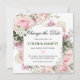 Casamento Elegante Altere a Data do lançamento alerta os convidados para uma alteração nos seus planos. Todo o texto é editável para lhe dar a máxima flexibilidade na descrição da situação. As rosas cor-de-rosa pinceladas, os roseboros cor-de-rosa profundos e as híbridos brancos criam uma estrutura floral rústica. A parte de trás do anúncio Change the Date (Alterar a data) tem um buquê floral rosa bonito.
