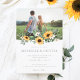 Celebre o seu casamento especial no estilo country com o nosso elegante design de convite para o casamento de fotografias de girassol no estilo country. Nosso design apresenta nossa ouro de aquarela pintada manualmente, girassóis amarelos e verde natural arranjados para criar este design de estilo country mínimo elegante. Os detalhes do convite são lindamente projetados para criar este convite de casamento simples, mas elegante, no estilo country com sua própria foto especial. Todas as flores são pintadas manualmente pela Paparia de Moodthologia.