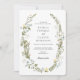 O convite de casamento com uma coroa aquática de flores selvagens inspiradas. Personalize com suas informações.