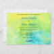 Um convite de na moda de arte. Uma textura de cor azul-limão e azul-turquesa. As cores se misturam e se misturam para criar pistas de verde tranquilo e girar juntas para criar formas e flores de cor semelhantes à nuvem. Personalize com seus próprios detalhes de casamento.