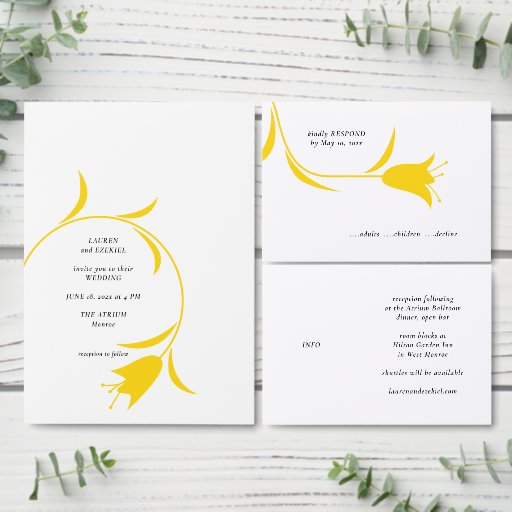 CONVITES CASAMENTO AMARELO MOD TULIP