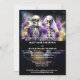 Apresentamos o nosso convite favorável ao orçamento que dá o tom perfeito para a sua comemoração assustadora! Imaginem uma noiva de esqueleto encantadora e um noivo de pé lado a lado num cemitério iluminado pela lua, cercado pelo brilho etéreo de relâmpagos e estrelas. O noivo está vestindo um smoking roxo picamente picante adornado com rosas roxas e amarelas cor-de-laranja pálidas e a noiva está vestindo um véu branco etéreo que também tem rosas nele. Vestidos em trajes de casamento formais, eles são o epítome da chic assustadora, prontos para celebrar o seu amor eterno! O fundo preto escuro melhora a atmosfera estranha, e apresenta modelos de texto brancos editáveis, permitindo que você personalize seu convite com sua própria redação de tom de fantasma. Perfeito para qualquer casamento de Halloween ou reunião assustadora, este convite é para agradar aos seus convidados com seu charme divertido e assustador!