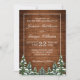 Convite de aniversário de casamento. Madeira marrom rústica, fundo nevado e floresta de neve. Estilo rústico aconchegante. Mais itens disponíveis neste estilo na nossa loja. Você pode editar o design, mudar cores, fontes e adicionar texto extra clicando em "personalizar mais".