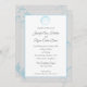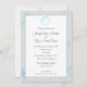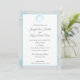Convite para casamento prata e praia azul com uma concha elegante e estrela-do-mar e monograma no verso deste convite para casamento de praia de destino romântico.